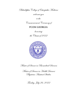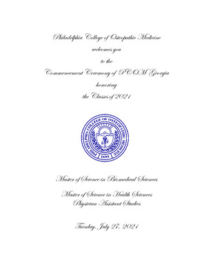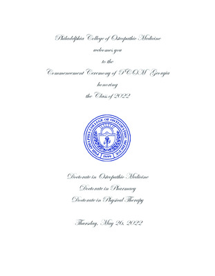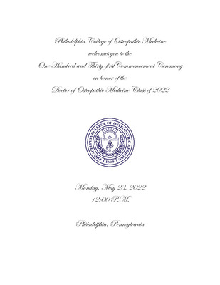 This digital project provides access to PCOM Graduate Commencement Programs. Commencement is a collaborative effort by the offices of Academic Affairs, Student Affairs, Enrollment Management, and Registrar, with support from a variety of other college departments.