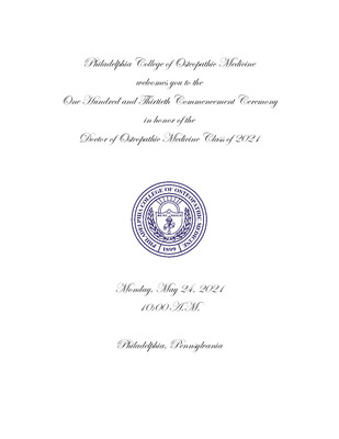 This digital project provides access to PCOM Commencement Programs. Commencement is a collaborative effort by the offices of Academic Affairs, Student Affairs, Enrollment Management, and Registrar, with support from a variety of other college departments.